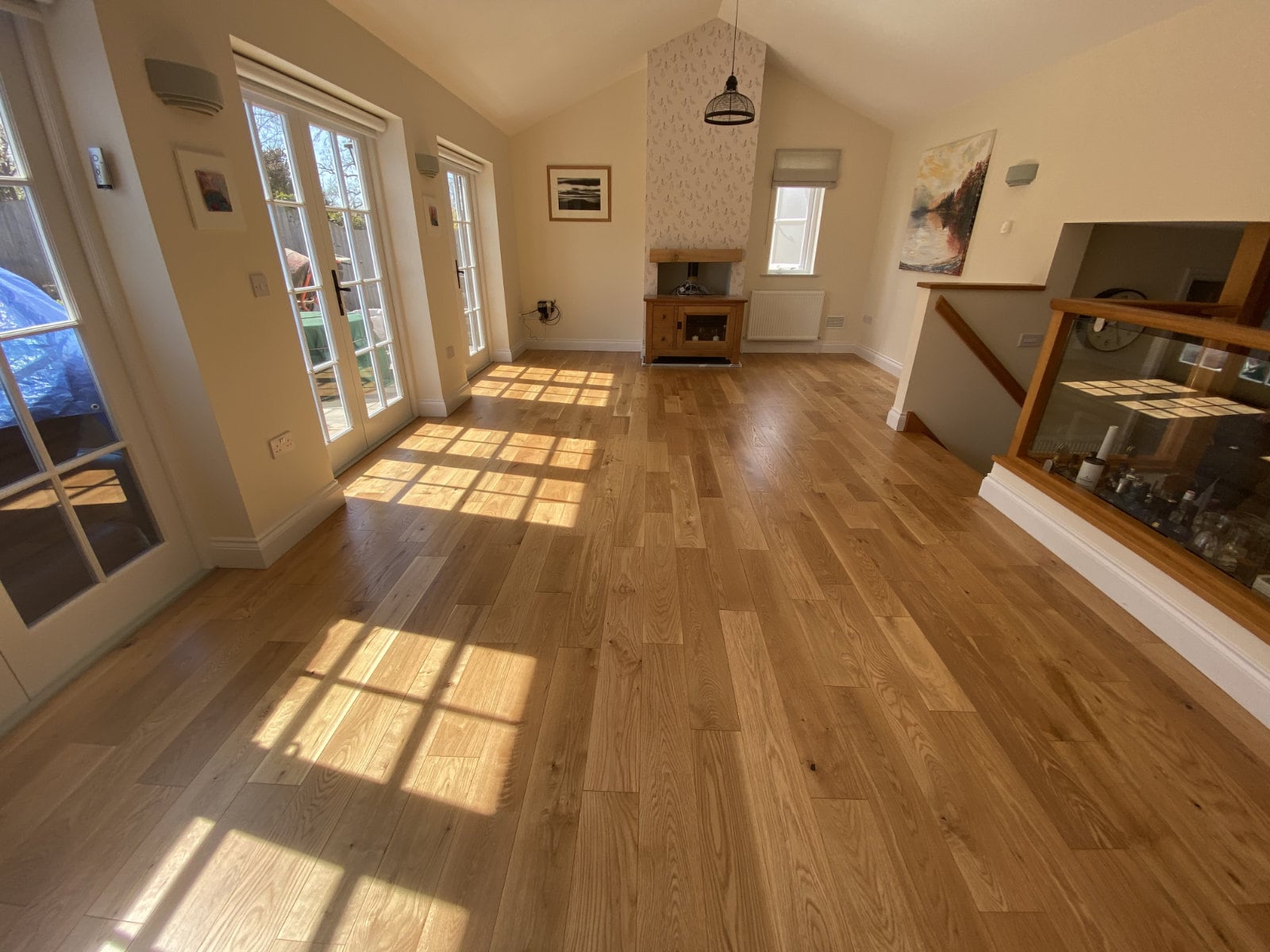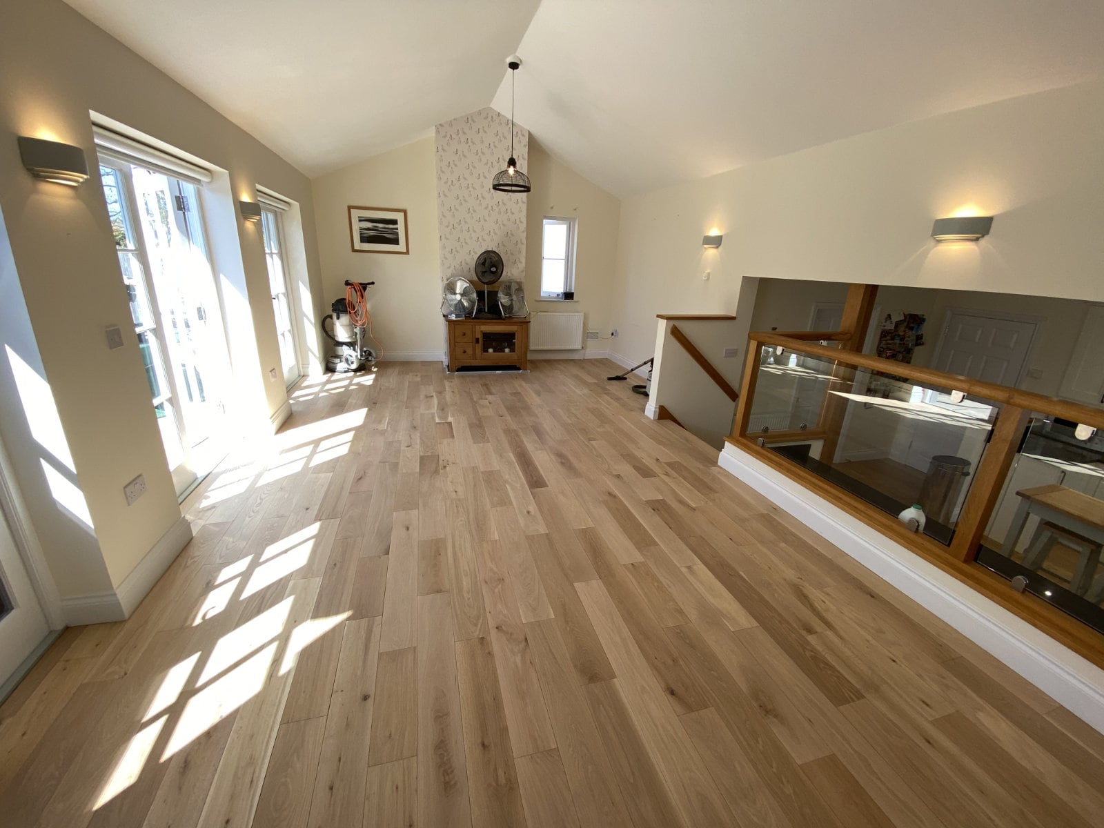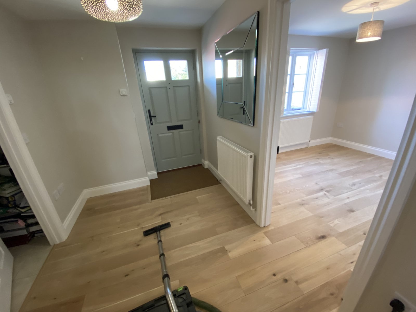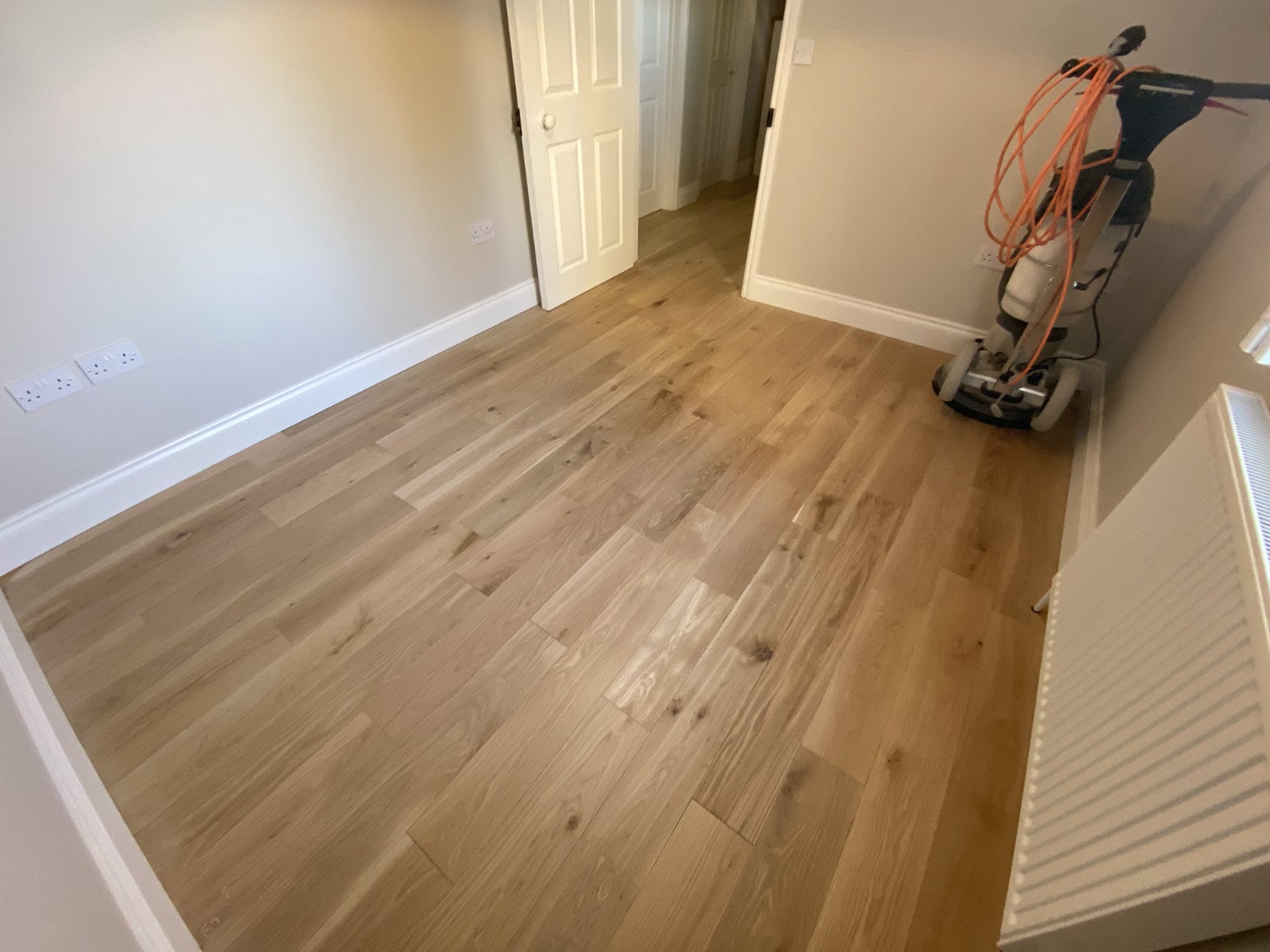 This Character Oak Engineered Floor had only been fitted a few years ago but it never had the appropriate finish applied once fitted. After repairing a few loose boards we carried out a three-stage sand across four rooms. Finishing included two coats of Hardwax oil.