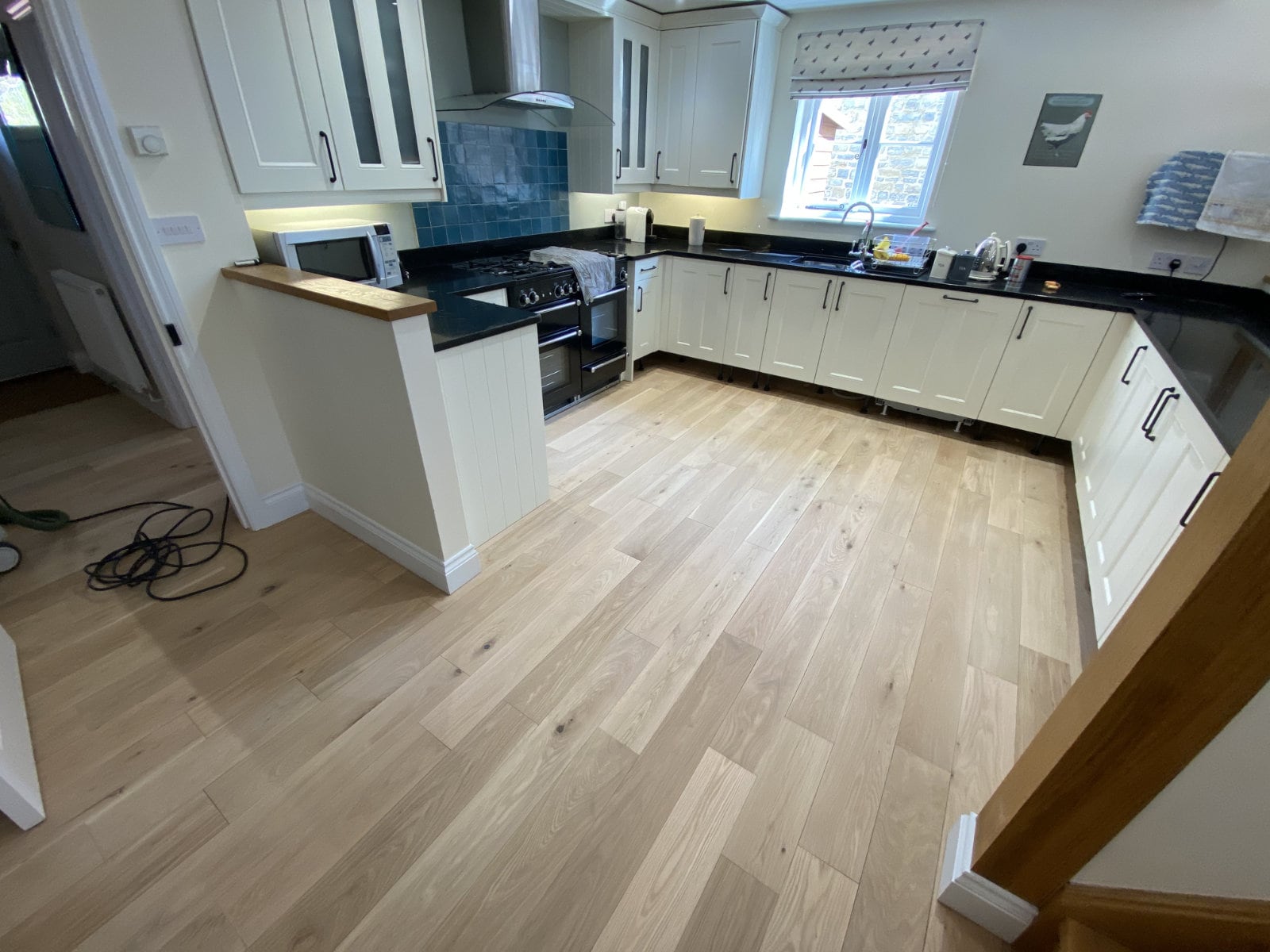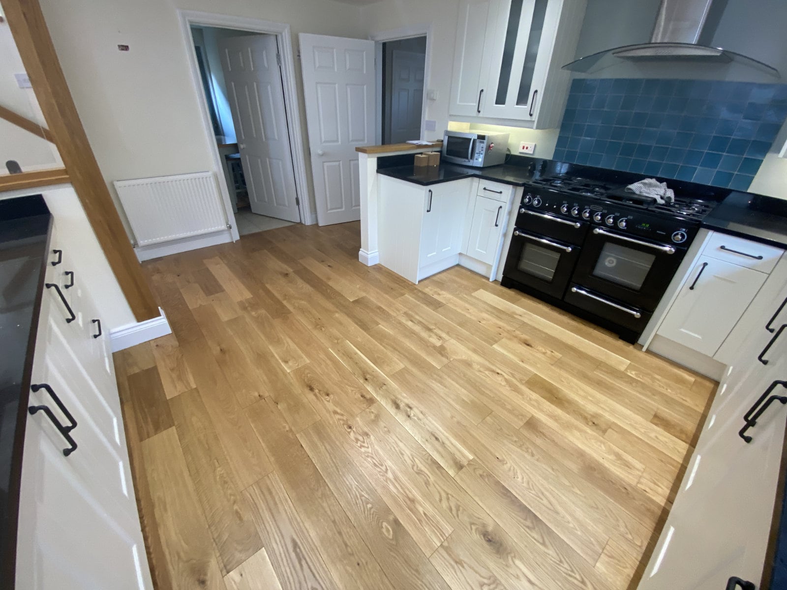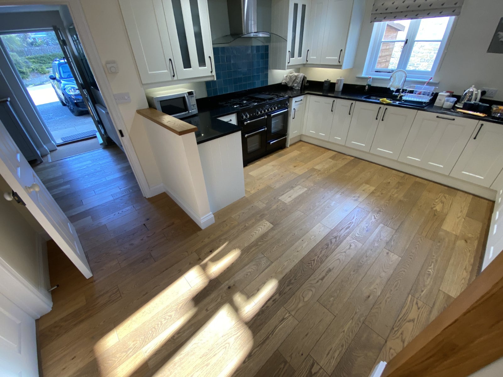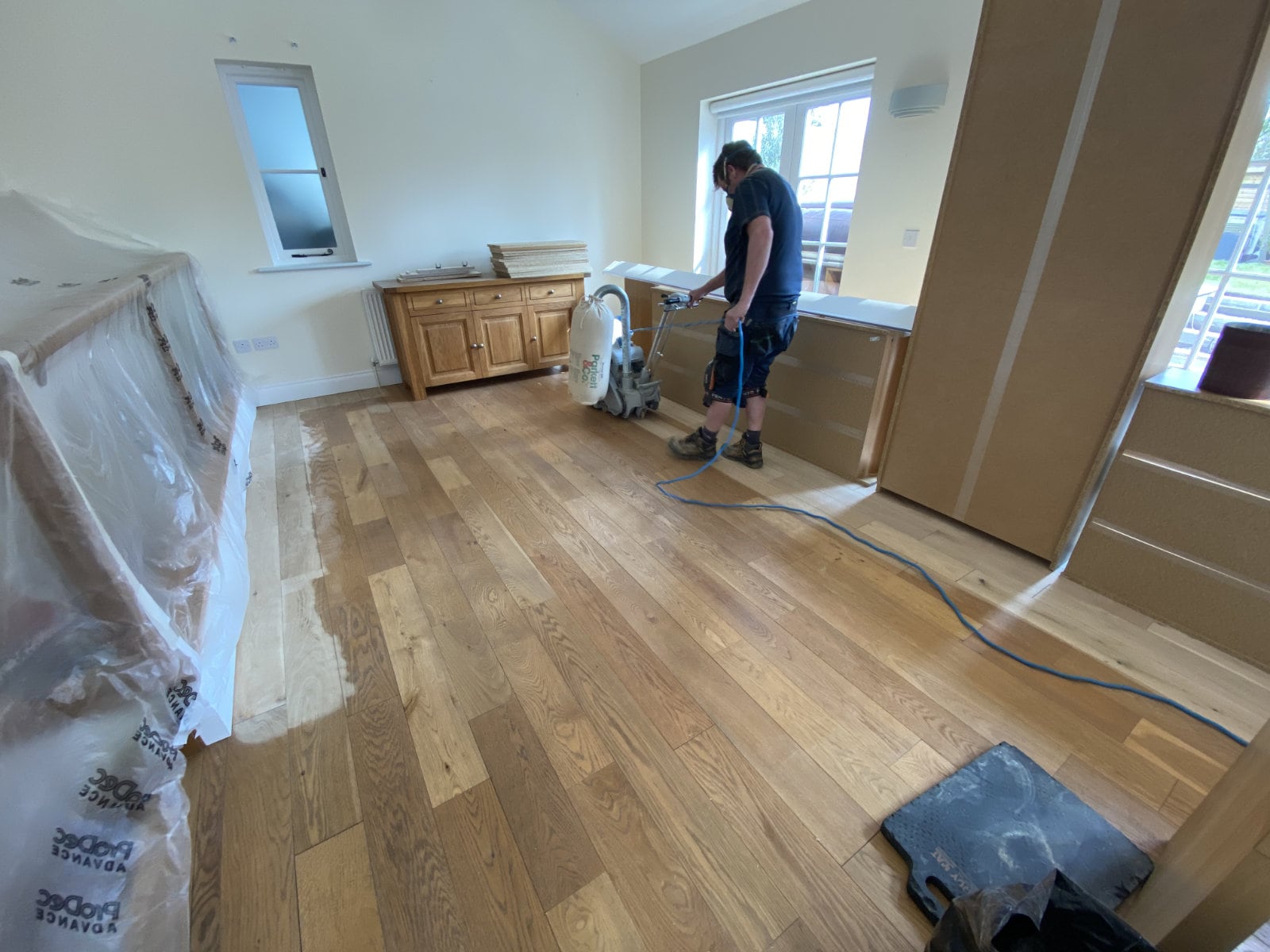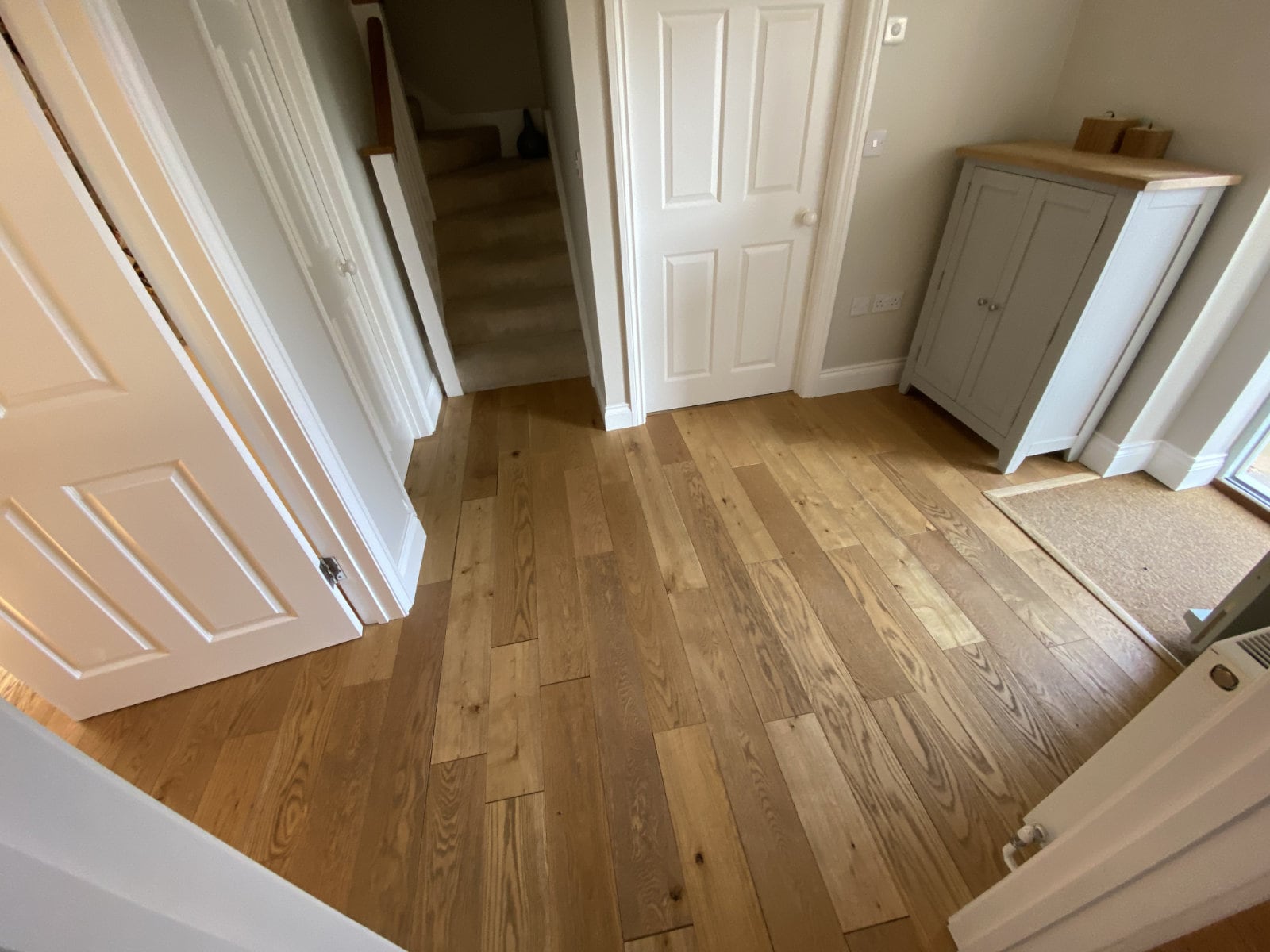 This Character Oak Engineered Floor had only been fitted a few years ago but it never had the appropriate finish applied once fitted. After repairing a few loose boards we carried out a three-stage sand across four rooms. Finishing included two coats of Hardwax oil.