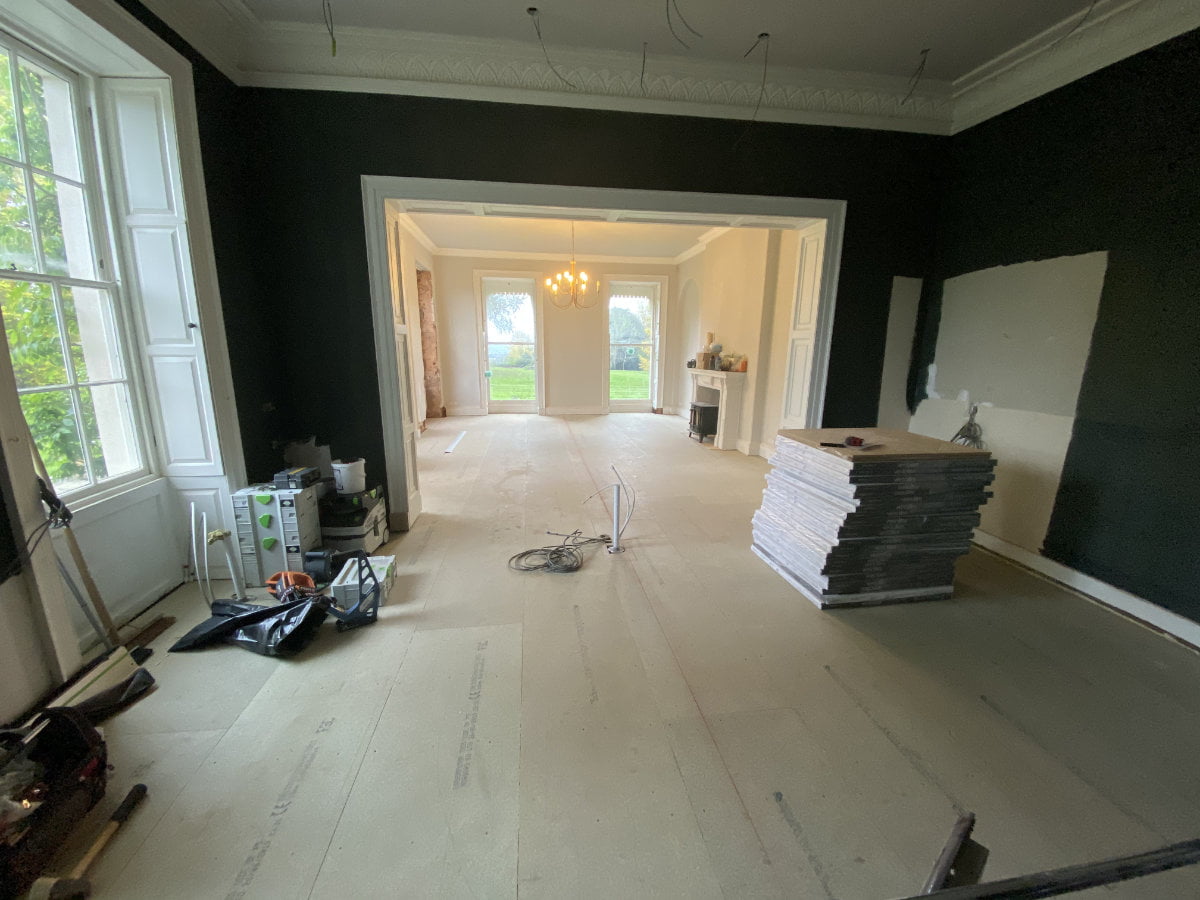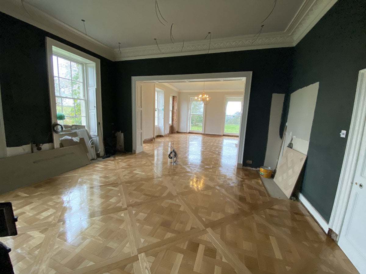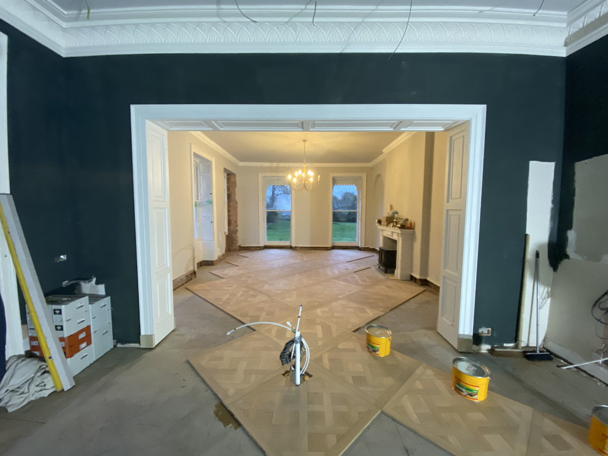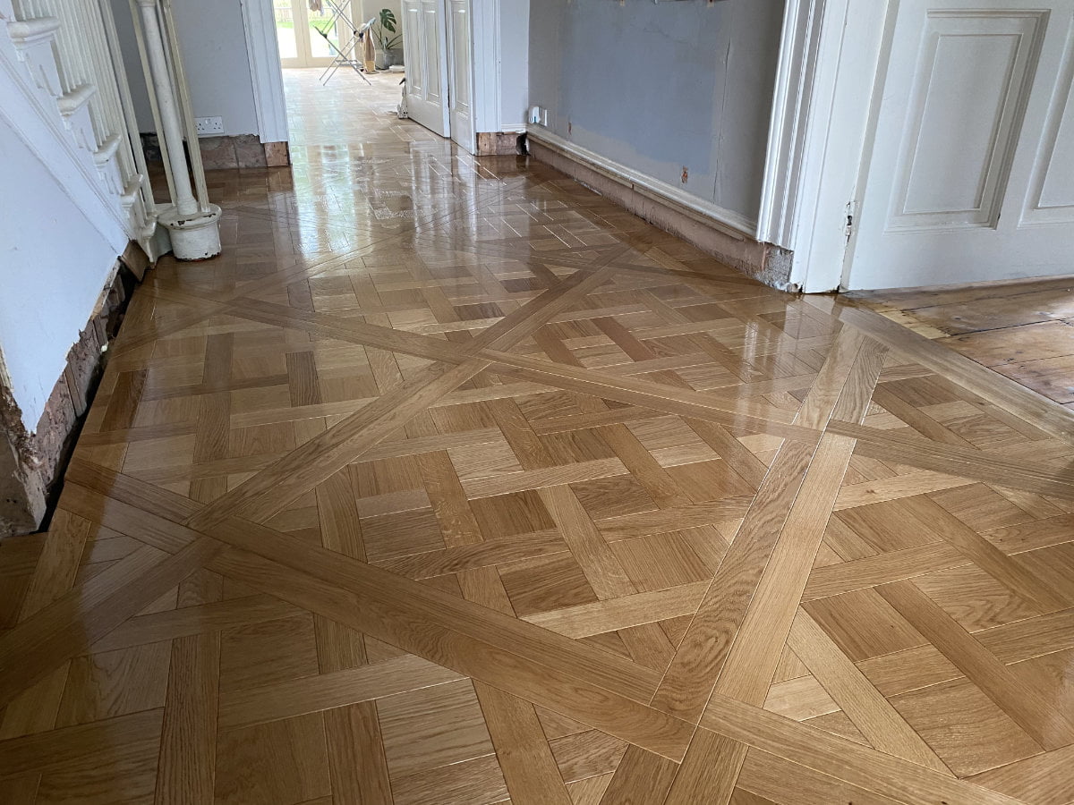We fitted Oak Versailles panels in the kitchen/dining room and hallway in this stunning 17th century rectory. The panels, named after the famous Palace of Versailles (Château De Versailles) in France, were stuck down to the subfloor using MS polymer adhesive. Once fitted we finished with Morrells Induro XLO hardwax oil, which helps to preserve the colour and feel of the wood.